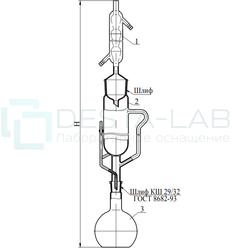 | Обозначение | Условная вместимость экстрактора | Условная вместимость колбы | Н | Шлиф |