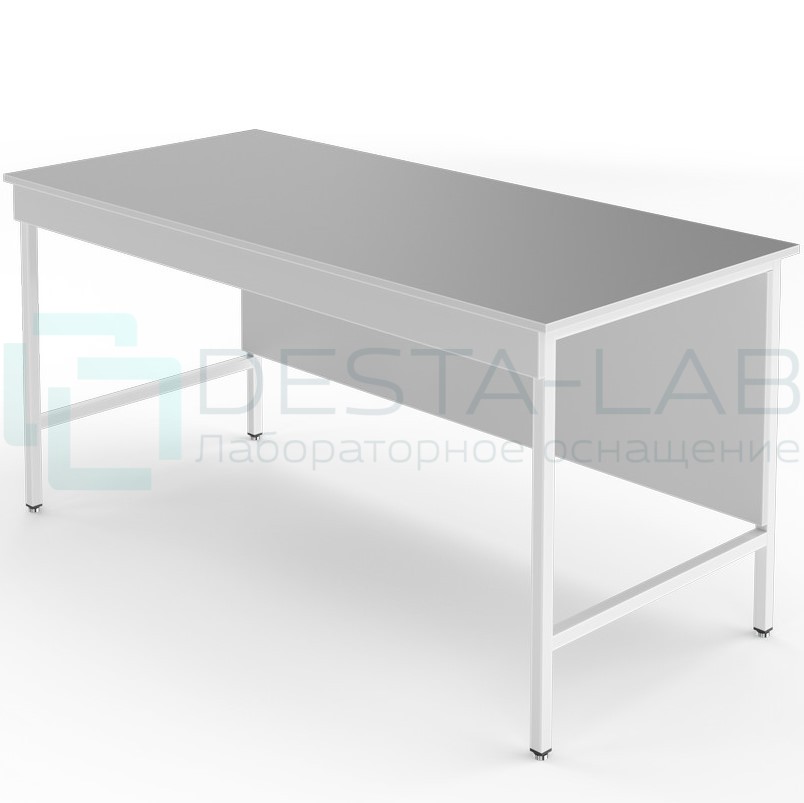 Столешница выполнена из химстойкого пластика. Он влагостоек, устойчив к длительному воздействию концентрированных кислот и щелочей. Ограниченно стоек к высокой температуре и к длительному воздействию органических растворителей. На такую столешницу не следует ставить печи или сушильные шкафы. Хороший выбор для учебных практикумов, аналитических и медицинских лабораторий.