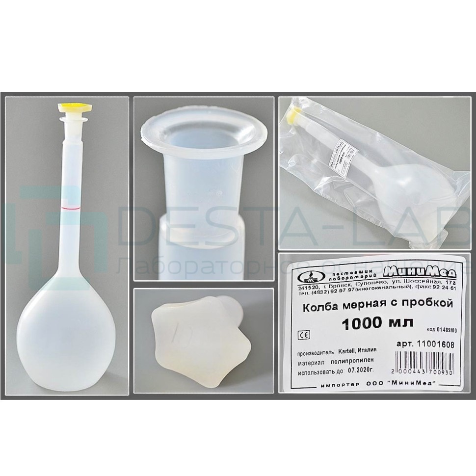 Колба мерная 1000 мл., с пробкой, п/п, Kartell