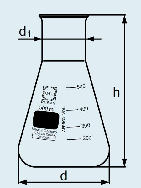 Колба Эрленмейера DURAN Group 500 мл, культуральная, без крышки, стекло