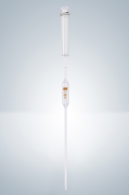 Пипетка волюметрическая с поршнем Hirschmann 5 мл, с одной меткой, светлое стекло, коричневая градуировка