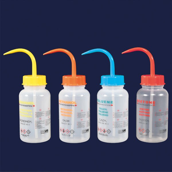 Промывалка ISOLAB изготовлена из прозрачного и полужесткого полиэтилена в соответствии с европейскими нормами безопасности (EC)1272/2008(GHS). Изогнутая трубка гарантирует тонкий и прямой поток при небольшом давлении на бутылку. Конструкция трубки обеспечивает дозирование жидкости без турбулентности. Крышка с крупными ребрами для повышения сцепления изготовлена из полиэтилена и представлет единое целое с трубкой. Внутренняя конструкция крышки обеспечивает герметичное закрытие без протечек. Химические названия, формулы, номера CAS и другая ключевая информация о безопасности напечатаны на поверхности промывалки на 4 языках (английский/французский/немецкий и испанский).