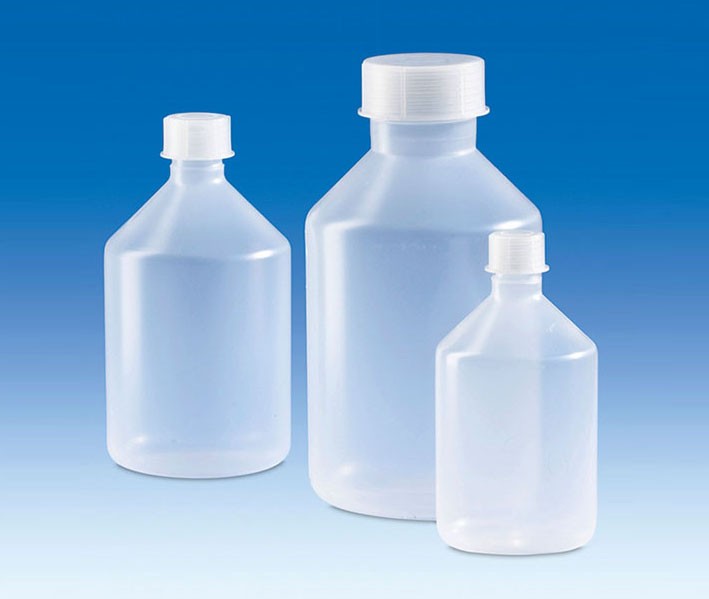 Прозрачные узкогорлые бутыли с винтовой крышкой из PP. Хорошая химическая устойчивость, идеально подходят для долговременого хранения жидкостей Имеет две ручки, PE-HD и прокладку из вспененного полиэтилена