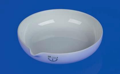 Чаша выпарная Haldenwanger низкой формы с носиком, полностью глазирована, кроме внешней поверхности дна.
