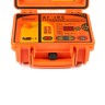 Степень защиты корпуса - кейса IP65 полностью исключает проникновение внутрь пыли и струй воды при закрытой крышке. Рабочий температурный диапазон: от -30ºС до +60ºС с внешним (аккумуляторным или сетевым питанием).