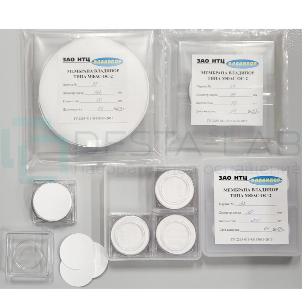 Мембраны Владипор типа МФАС-П – микропористый пленочный материал, изготовленный на основе смеси ацетатов целлюлозы с размером пор 0,05-0,15; 0,2-0,5; 0,85-1,5; 0,5-0,85; 2,4-4,5 мкм и общей пористостью 80-85%.
