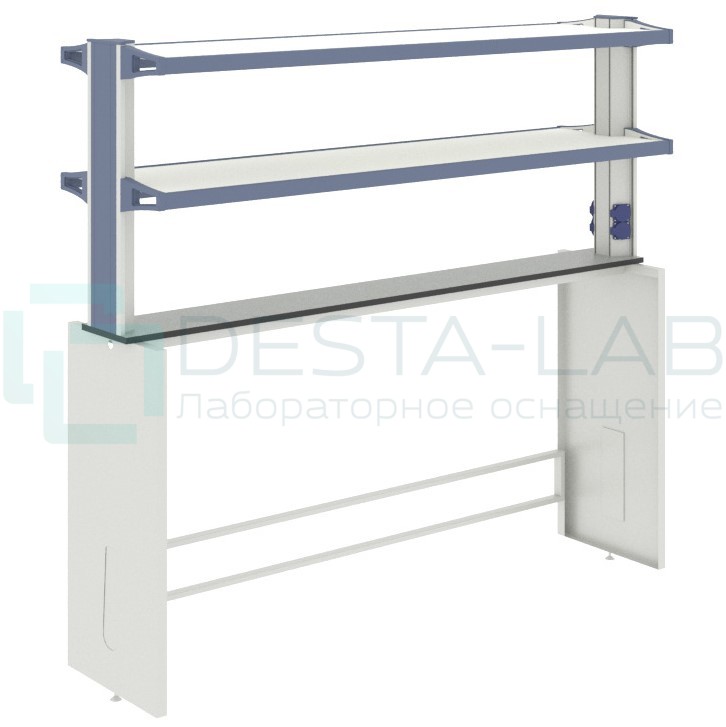 Технологическая стойка ЛАБ-PRO ТСОн 180.20/40.90/160 предназначена для объединения лабораторных столов на опорной тумбе в островной лабораторный комплекс.